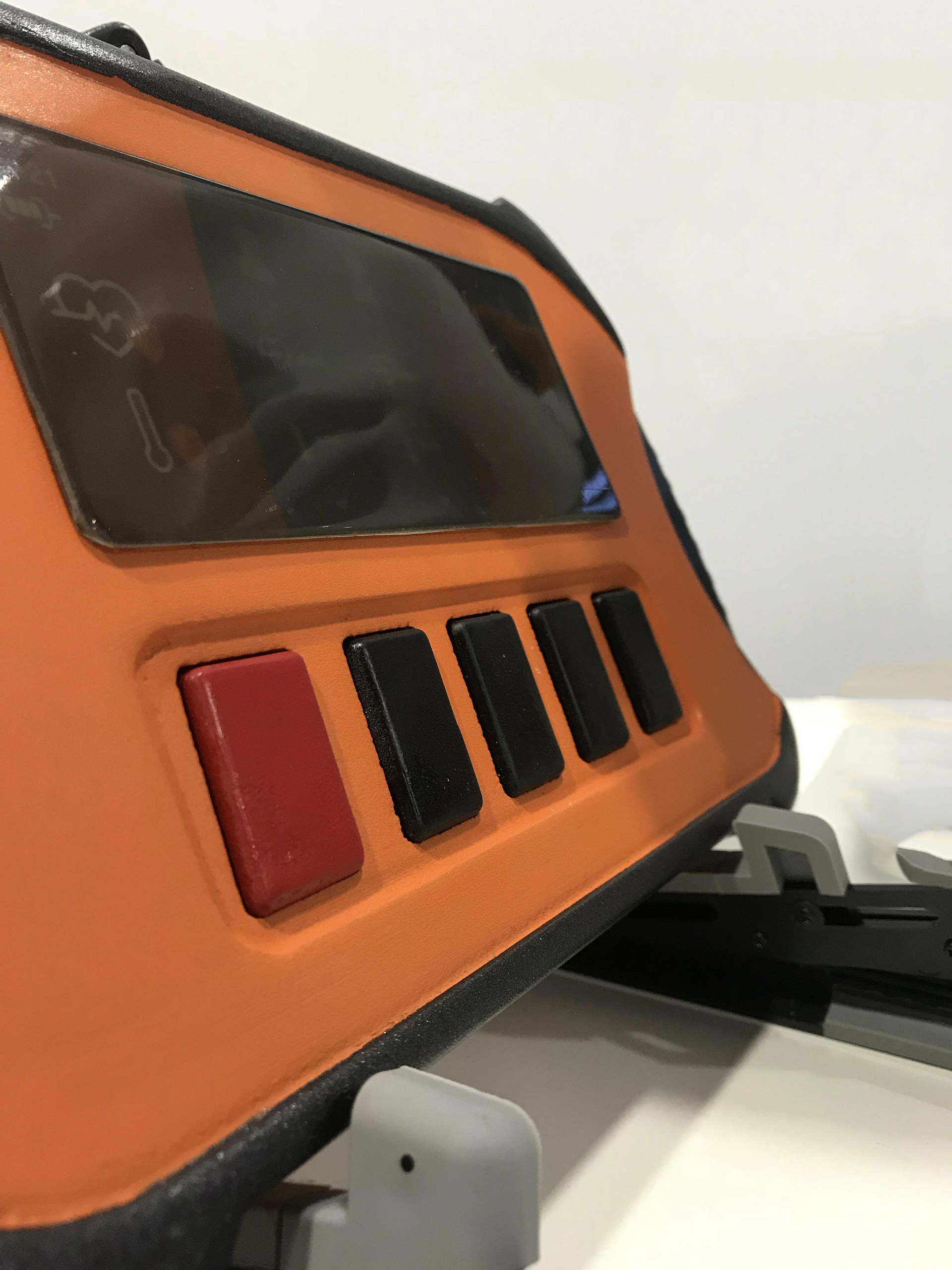 Within this sub-assembly of the ReX Headset, it predominantly features the (1) Throat Microphone, the (2) Heartbeat Reader, the (3) Temperature/ Humidity Scanner, (4) Battery and (5) Core Chip.